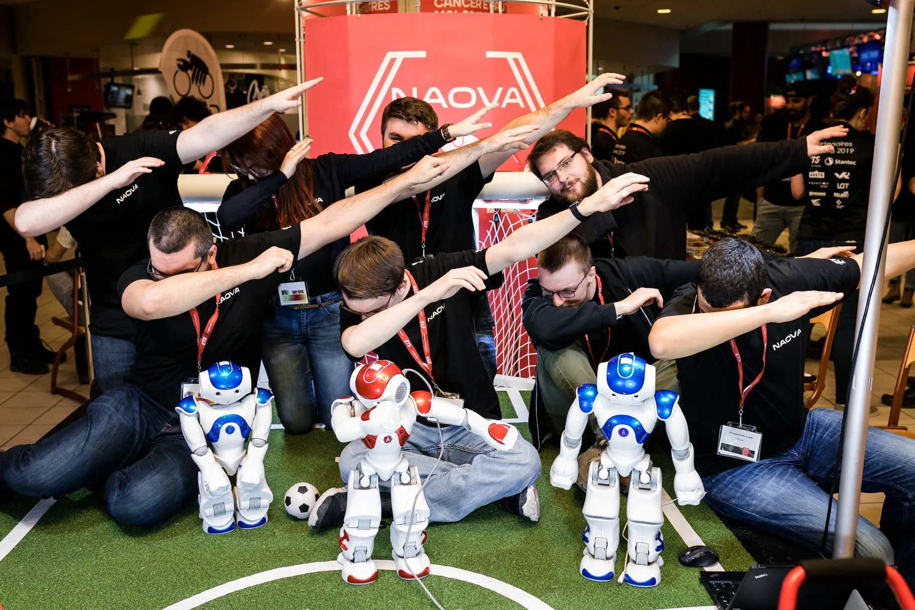 Jonathan Fortin, étudiant en maîtrise avec mémoire sur l’optimisation des déplacements robotiques, ÉTS. Naova a pour vocation la participation aux matchs de soccer robotique lors des épreuves de la plus grande compétition internationale de robots: la Robocup. Lors de ces matchs, des équipes de robots s'affrontent pour marquer un maximum de buts contre l'adversaire. Les robots agissent de manière entièrement autonome, et doivent donc être programmés de manière à pouvoir jouer en équipe sans intervention extérieure. Toutes les équipes sont composées du même robot standard, il faut donc réussir à faire la différence sur le programme dictant son comportement.